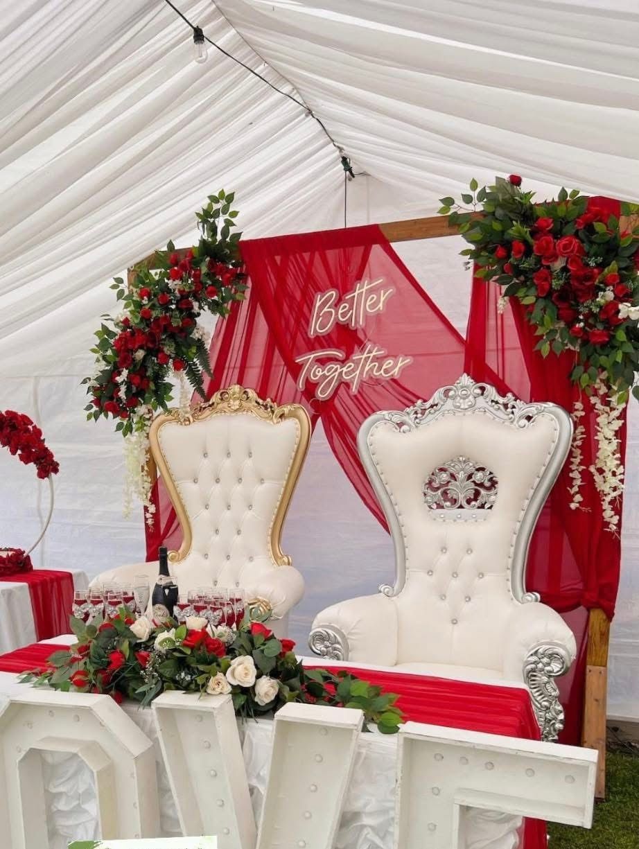 Make a grand statement with our elegant throne chairs — perfect for weddings, birthdays, baby showers, and more. Available in a variety of colors, with mini sizes for kids so everyone can have their royal moment.
